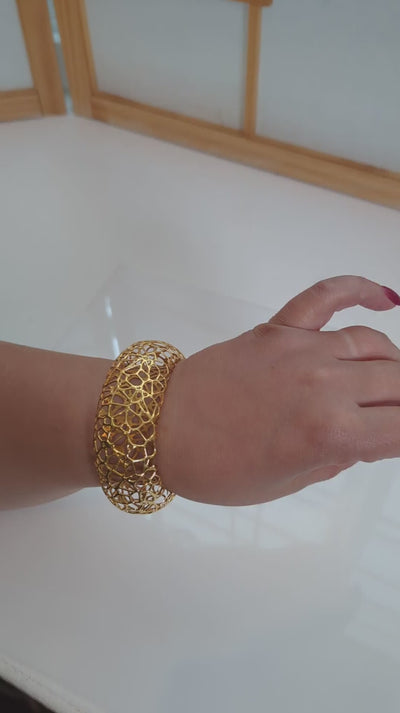 The bracelet is smooth and round, with its intricate hollow design making it both elegant and comfortable to wear. It showcases the harmony between nature, science, and craftsmanship. Available in multiple materials, including gold-plated, sterling silver, brass, and bronze, this bracelet is perfect for those who appreciate unique, architecturally inspired jewelry.