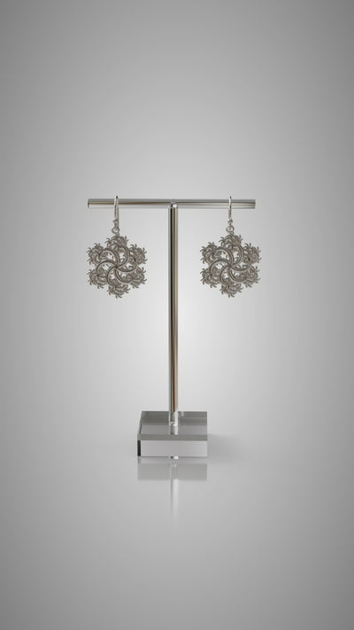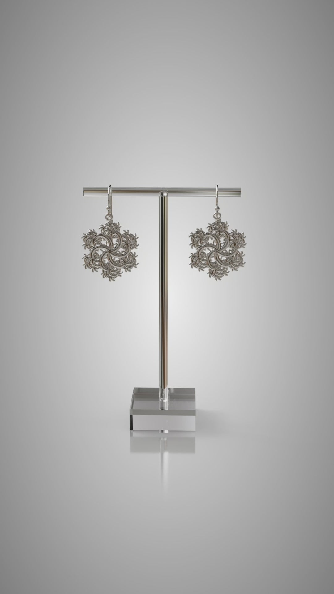 These stunning six-pointed earrings are fractal, with layers of self-symmetry as you get to the fine details. With six-sides it resembles a snowflake, if somehow snowflake could come alive. They are light-weight for everyday wear. Excellent for a gift to your wife, your mother, or your lover.